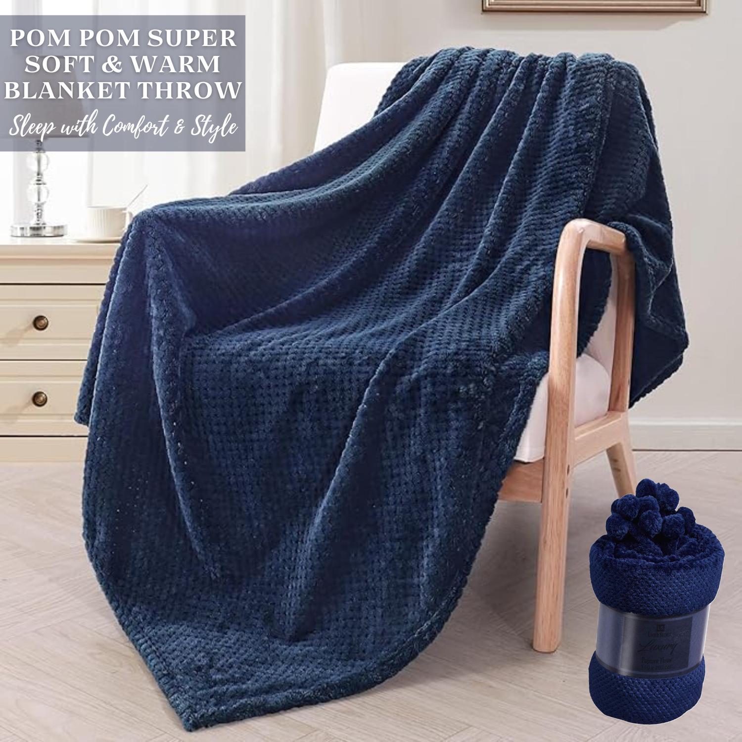 Luxury Pompom Waffle Blanket Fleece Travel Throw Sofa Bed Double & King sizes